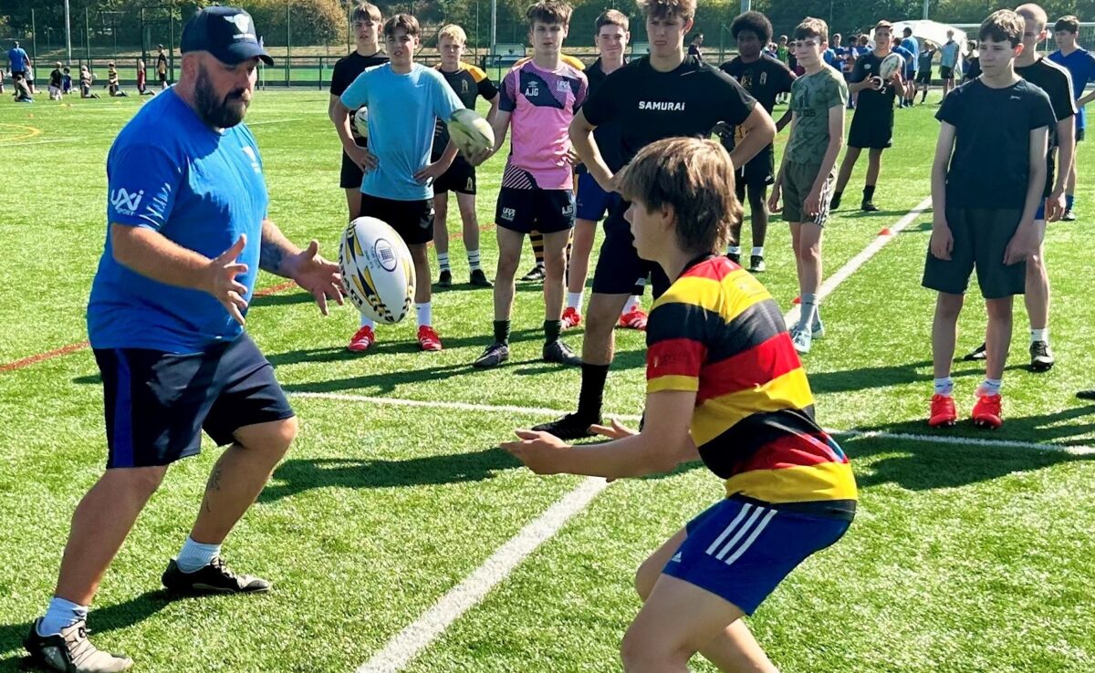 …and what a fantastic morning it is at Romsey RFC. Rugby superstars including ex Springbok Ashley Johnson begin